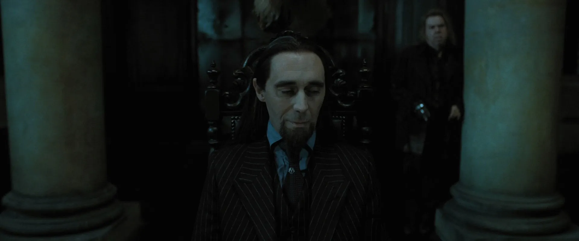 Cast: Daniel Radcliffe as Harry Potter, Rupert Grint as Ron Weasley, Emma Watson as Hermione Granger, Helena Bonham Carter as Bellatrix Lestrange, Robbie Coltrane as Rubeus Hagrid, Ralph Fiennes as Lord Voldemort, Michael Gambon as Albus Dumbledore, Bill Nighy as Rufus Scrimgeour, Brendan Gleeson as Alastor "Mad-Eye" Moody, Richard Griffiths as Vernon Dursley, John Hurt as Ollivander, Rhys Ifans as Xenophilius Lovegood, Jason Isaacs as Lucius Malfoy, Alan Rickman as Severus Snape, Fiona Shaw as Petunia Dursley, Timothy Spall as Peter Pettigrew, Imelda Staunton as Dolores Umbridge, David Thewlis as Remus Lupin, Warwick Davis as Griphook, Tom Felton as Draco Malfoy, Toby Jones as Dobby (voice), Dave Legeno as Fenrir Greyback, Simon McBurney as Kreacher (voice), Helen McCrory as Narcissa Malfoy, Nick Moran as Scabior, Peter Mullan as Corban Yaxley, David O'Hara as Albert Runcorn, Clémence Poésy as Fleur Delacour, Natalia Tena as Nymphadora Tonks, Julie Walters as Molly Weasley, Mark Williams as Arthur Weasley, Bonnie Wright as Ginny Weasley, Harry Melling as Dudley Dursley, Ian Kelly as Mr Granger, Michelle Fairley as Mrs Granger, Carolyn Pickles as Charity Burbage, Graham Duff as Death Eater, Guy Henry as Pius Thicknesse, Arben Bajraktaraj as Antonin Dolohov, Rod Hunt as Thorfinn Rowle, Suzie Toase as Alecto Carrow, Ralph Ineson as Amycus Carrow, Adrian Annis as Death Eater, Emil Hostina as Death Eater, Paul Khanna as Death Eater, Richard Strange as Death Eater, Anthony John Crocker as Death Eater, Peter G. Reed as Death Eater, Granville Saxton as Death Eater, Judith Sharp as Death Eater, Ashley McGuire as Death Eater, Penelope McGhie as Death Eater, Bob Yves Van Hellenberg Hubar as Death Eater, Tony Kirwood as Death Eater, David Ryall as Elphias Doge, James Phelps as Fred Weasley, Oliver Phelps as George Weasley, George Harris as Kingsley Shacklebolt, Andy Linden as Mundungus Fletcher, Domhnall Gleeson as Bill Weasley, Frances de la Tour as Olympe Maxime, Evanna Lynch as Luna Lovegood, Matyelok Gibbs as Auntie Muriel, Eva Alexander as Waitress, Matthew Lewis as Neville Longbottom, Jon Campling as Death Eater, Devon Murray as Seamus Finnigan, William Melling as Nigel Wolpert, Simon Grover as Death Eater, Freddie Stroma as Cormac McLaggen, Isabella Laughland as Leanne, Jessie Cave as Lavender Brown, Anna Shaffer as Romilda Vane, Josh Herdman as Gregory Goyle, Amber Evans as Twin Girl 1, Ruby Evans as Twin Girl 2, Katie Leung as Cho Chang, Georgina Leonidas as Katie Bell, Louis Cordice as Blaise Zabini, Scarlett Hefner as Pansy Parkinson, Afshan Azad as Padma Patil, Steffan Rhodri as Reginald Cattermole, Sophie Thompson as Mafalda Hopkirk, Daniel Tuite as Skinny Ministry Wizard, Daisy Haggard as Ministry Lift (voice), George Potts as Balding Wizard, Rose Keegan as Red Haired Witch, Ned Dennehy as Scared Man, Kate Fleetwood as Mary Cattermole, Daniel Hill as Bushy Haired Muttering Wizard, Rade Šerbedžija as Mykew Gregorovitch, Jamie Campbell Bower as Young Grindelwald, Hazel Douglas as Bathilda Bagshot, Adrian Rawlins as James Potter, Geraldine Somerville as Lily Potter, Miranda Richardson as Rita Skeeter, Michael Byrne as Gellert Grindelwald, Samuel Roukin as Snatcher, Toby Regbo as Young Albus Dumbledore (uncredited), Lewis Young as Snatcher (uncredited)